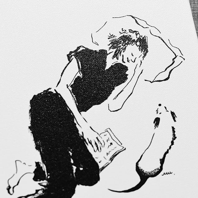 ぬくもりのあるやさしいタッチで描かれた、ダックスフントと女性の何気ない穏やかな日常の一枚。